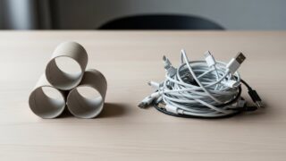 絡まりがちなコード類は、トイレットペーパーの芯で驚くほど扱いやすくなります。特別な道具は不要。筒の形状を活かした「ちょうどいい」収納のコツや、断線を防ぐ巻き方、見た目を整える工夫をご紹介します。